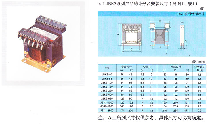 本系列變壓器是其他控制變壓器更新?lián)Q代的產(chǎn)品, 采用進口材料和先進工藝設(shè)計制造,接線方式可采用壓接、插接兩種方式,并采用防止偶然觸及保護要求的接線端子,其中新型JBK6系列控制變壓器帶短路與熱保護裝置,具有工作可靠、耗能低、體積小、接線安全、適用性廣等特點。